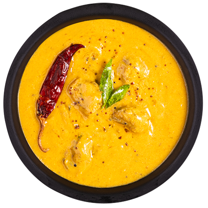 Gram flour fritters in tangy yogurt curry. Heats up in minutes for a quick bite.